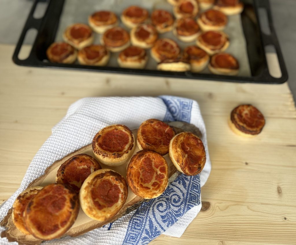 De bladerdeeg mini-pizza’s zijn een supersnel te bereiden snack voor geweldige tussendoortjes en smakelijke aperitieven.