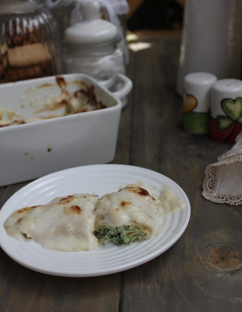 Nadat ze zijn gevuld met de ricotta- en spinazievulling, worden ze opgerold en in een ovenschaal gelegd, bedekt met de bechamelsaus en bestrooid met geraspte parmezaan en pecorino. Ten slotte gratineren we ze in de oven tot ze een gouden en knapperige bovenkant hebben. Het resultaat is een romig, smaakvol en absoluut heerlijk gerecht.