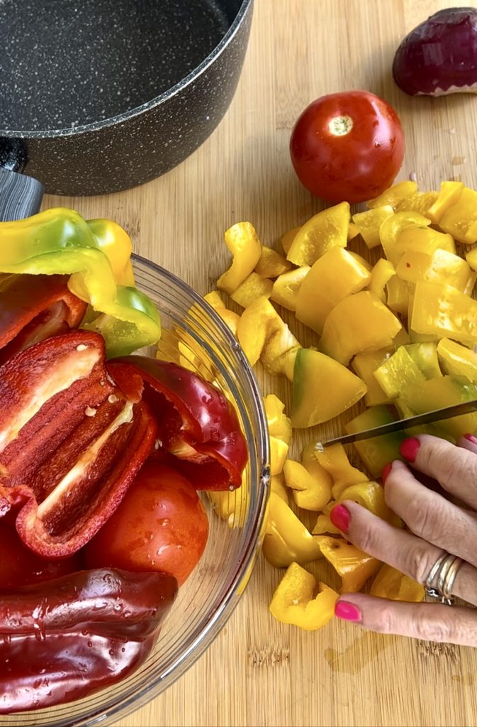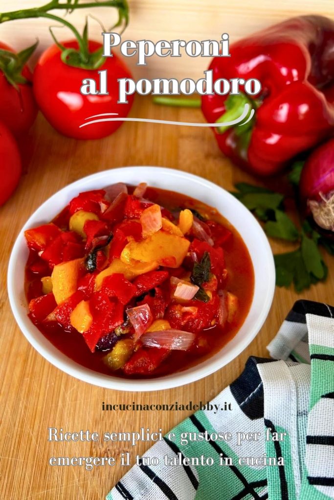 Paprika’s met tomaat zijn een uiterst veelzijdig gerecht, perfect als bijgerecht, ze kunnen zowel warm als koud worden gegeten en zijn ook heerlijk als saus voor pasta of als vulling voor broodjes en focaccia.