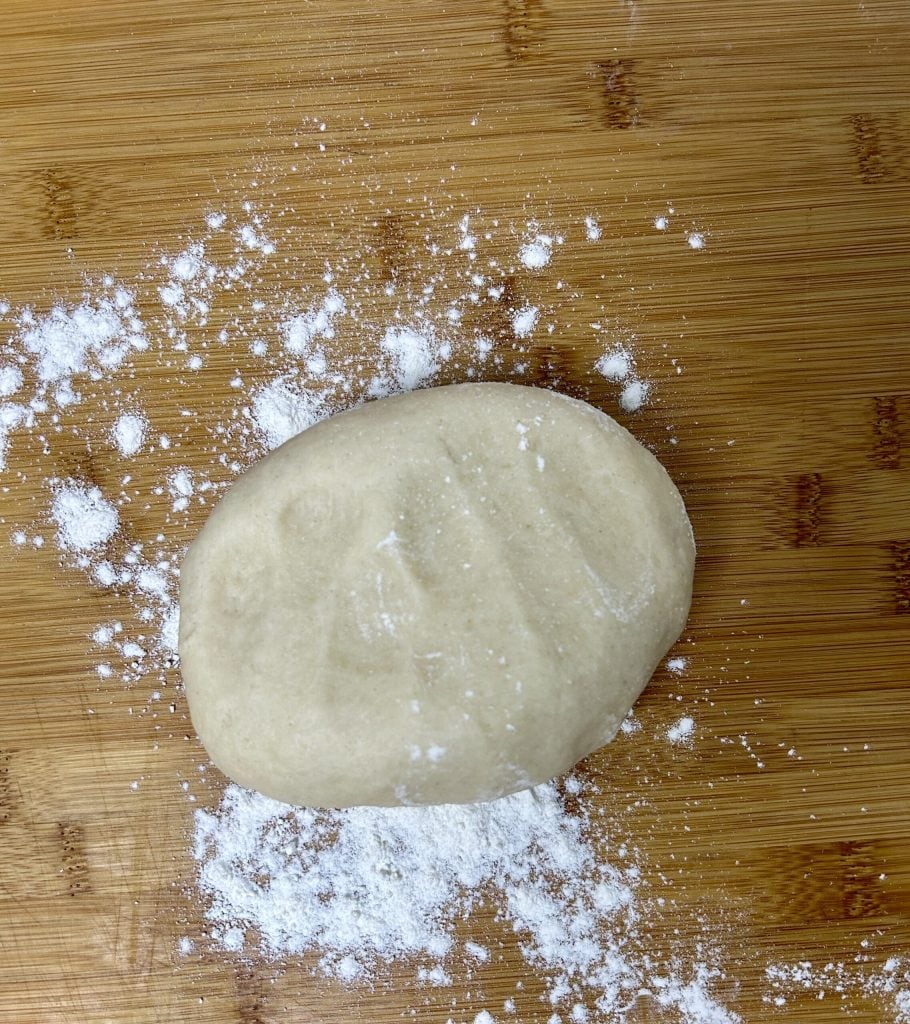 • Wanneer het deeg compact is, breng het dan over op een licht met bloem bestoven werkvlak en kneed het tot een mooie bal. Op dit punt kun je het direct gebruiken om hartige taarten en snacks te maken, of bewaar het in de koelkast gewikkeld in folie zodat het klaar is voor gebruik wanneer je het nodig hebt.