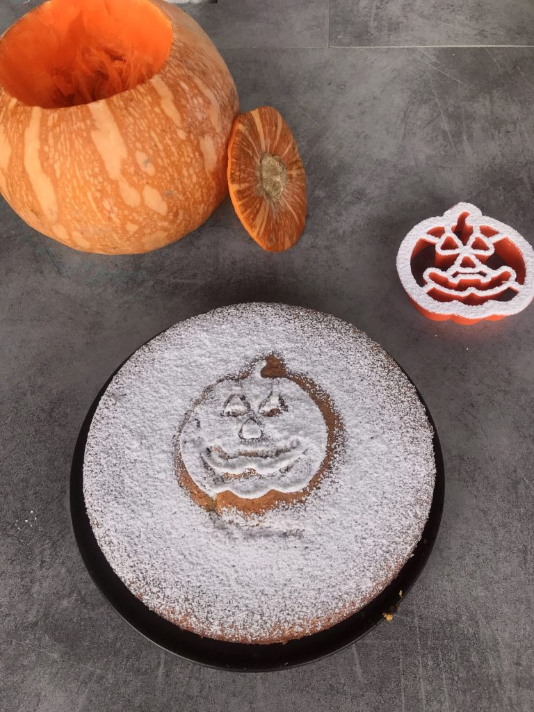 In feite is het een klassieke taart versierd voor de gelegenheid, een perfecte taart van ontbijt tot snack op basis van pompoen; supersnel te bereiden, je hebt alleen een mixer met elektrische garde en 5 minuten nodig om het beslag te bereiden.