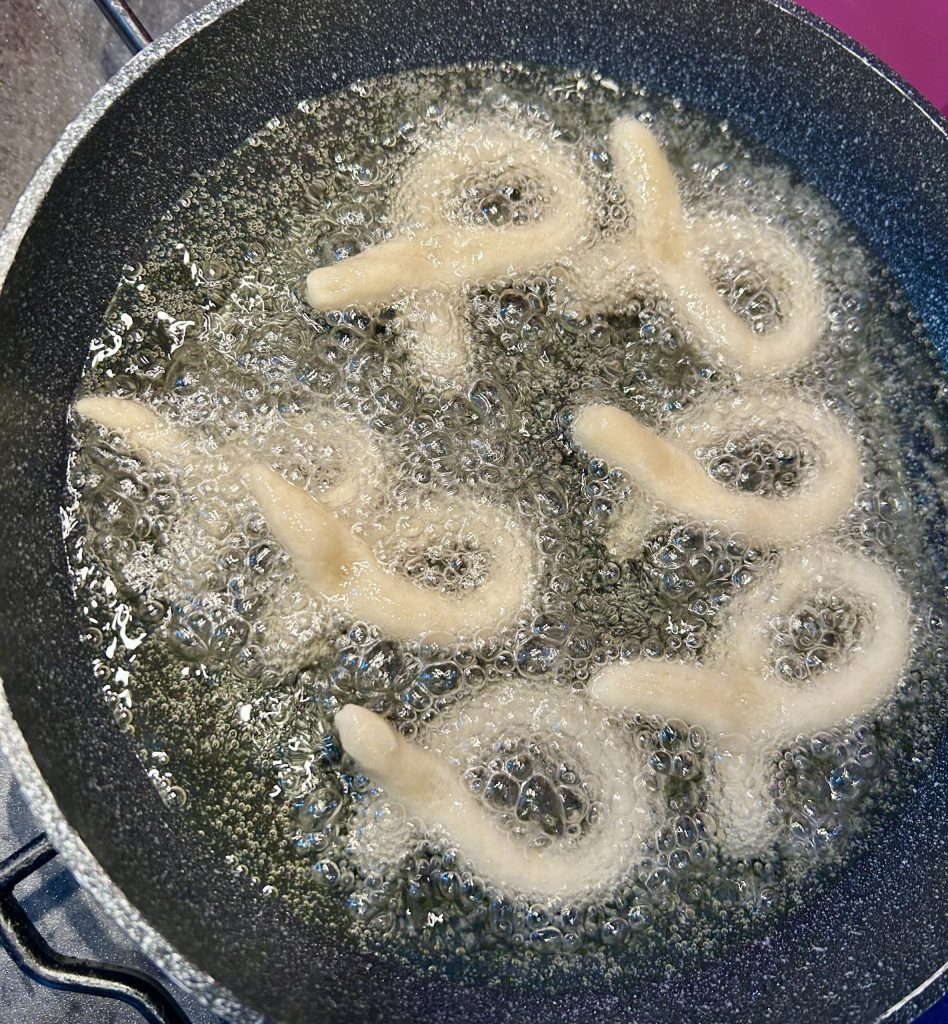 Ik ontdekte het dankzij mijn 10-jarige neef, die met grote gevoeligheid en zachtheid me wilde leren hoe hij het samen met zijn oma en tante bereidt. Een speciale middag vol deeg, gelach en samenwerking: hij begeleidde de stappen, ik hielp hem bij het koken en frituren. In een paar minuten brachten we een zoet gerecht op tafel dat de hele familie wist te verenigen, ons warmte, vreugde en die magie bezorgde die alleen traditionele recepten kunnen overbrengen.