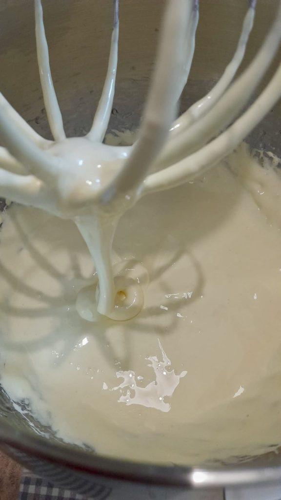 Wanneer de siroop de juiste temperatuur bereikt, giet hem dan langzaam over de eidooiers terwijl je ze met de elektrische garde begint op te kloppen, ze moeten wit worden en goed afkoelen. Zodra de eidooiers goed zijn opgeklopt met de suiker, kunt u de mascarpone toevoegen en nog even kloppen met de garde om een mooie stevige crème te verkrijgen.