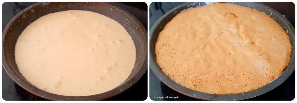 Terwijl alles gemengd wordt, bereid je een bakvorm van 24-26 cm voor en voeg je 100 g suiker en 2 eetlepels water toe om karamel te maken (zonder dat de bakvorm ingevet of met bloem bestrooid is), zet het op het gas om te verwarmen en als het goed gesmolten is, haal je het van het vuur en draai je het vloeibare mengsel door de hele bakvorm zodat het aan de randen en de bodem kleeft.