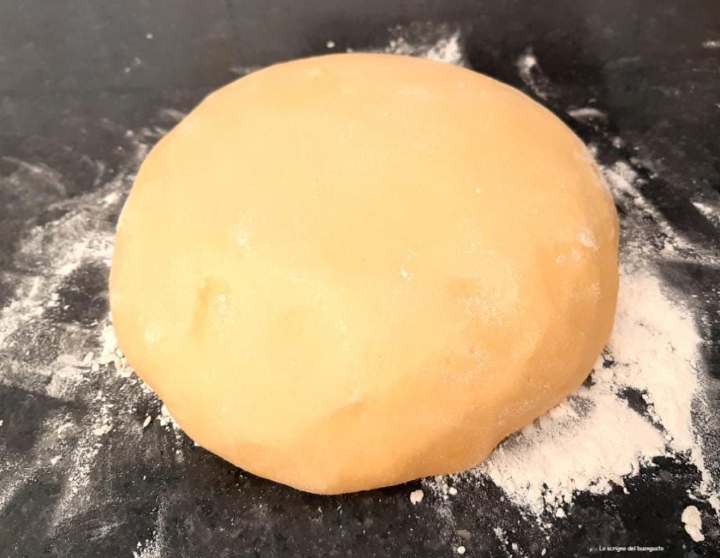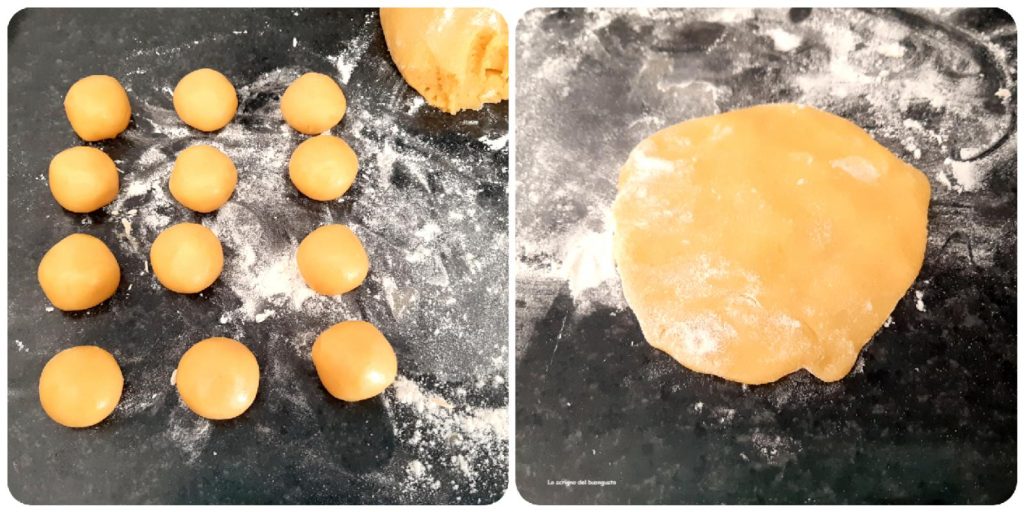 Haal het zanddeeg uit de koelkast en begin onze bocconotti voor te bereiden door het deeg te hernemen en balletjes te maken ter grootte van een walnoot.