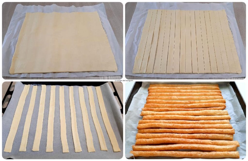 Bekleed een bakplaat met bakpapier, plaats de stroken deeg er goed op afstand en bak ze in een voorverwarmde oven op 200°C gedurende 10 minuten.