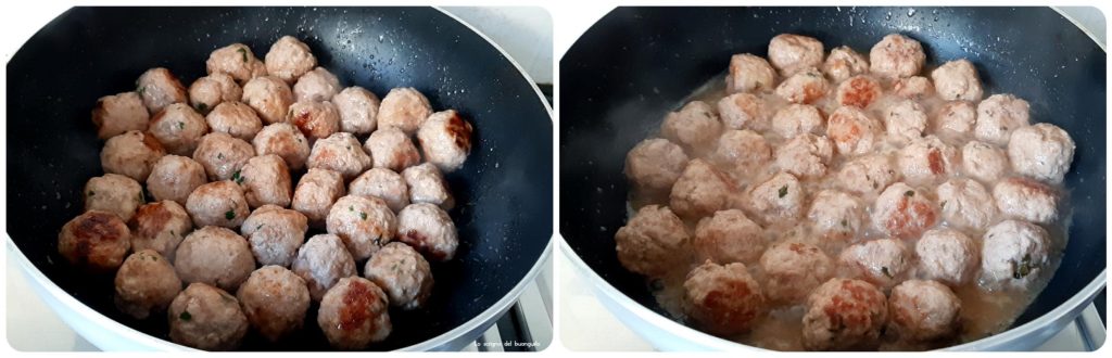 Neem een antiaanbakpan, doe de olijfolie erin en verwarm het, voeg dan de gehaktballen toe en laat ze rondom lichtjes bruin worden voor minstens 10-15 minuten, draai ze af en toe om.