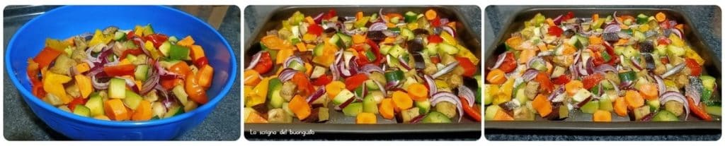 Het is een heel snel bijgerecht, laag in calorieën en bijna een koelkastopruiming, gewoon de groenten snijden, kruiden, in de oven doen en in redelijke tijd bakken!