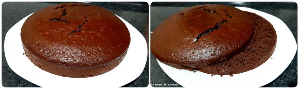 Na het bakken, laat de taart afkoelen, ondertussen smelt de nutella au bain-marie, als het gesmolten is, haal van het vuur en voeg de mascarpone toe, meng goed, snijd de taart horizontaal door en vul deze met het mascarpone- en nutellamengsel.