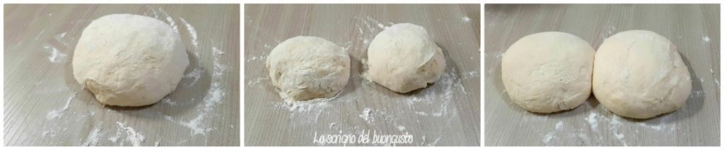 Na de tijd, bestuif het werkoppervlak met bloem en breng het deeg erover, werk het en geef het opnieuw een homogene vorm, laat het opnieuw rijzen gedurende minstens 30 minuten.