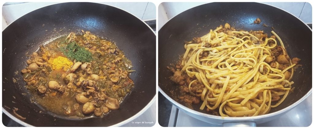 Bereiding van Gouden linguine met zeevruchten en kurkuma