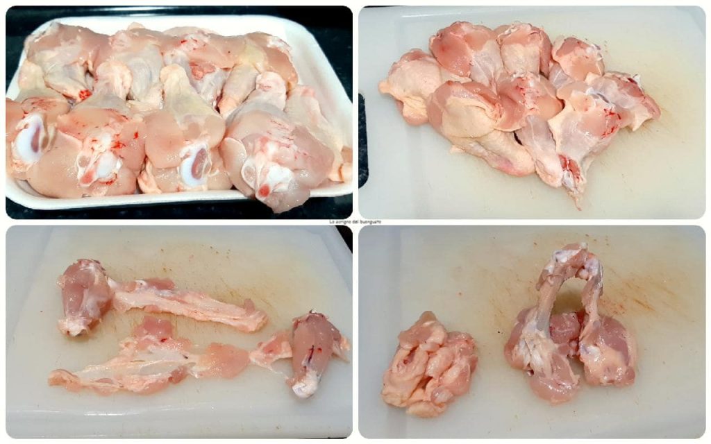 Pel eerst de kipvleugels zodat het bot schoon blijft en het vlees naar beneden is verzameld.