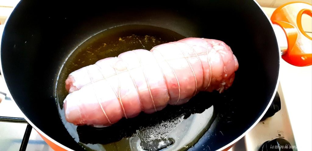 Als ons vlees is aangebraden, voegen we een snufje zout en peper toe, en vervolgens de witte wijn, daarna deksel erop en minstens anderhalf uur op middelhoog vuur laten koken terwijl je de gaarheid controleert.