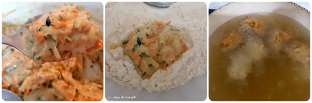 Deze beignets zijn een mix van groenten zoals courgette, aardappelen, wortelen en Parmezaanse kaas, de groenten worden geraspt en gemengd met bloem en eieren, alles goed gemengd.