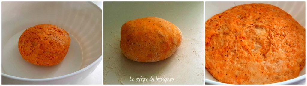 Ze zijn een beetje oranje omdat ik gedroogd paprikapoeder in het deeg heb gedaan, maar als je problemen hebt om het te vinden, kun je het vervangen door geprakte paprika’s die veel zijn ingekookt in de pan en als je ze aan het deeg toevoegt, moet je wellicht de hoeveelheid bloem iets verhogen, afhankelijk van wat je nodig acht, aangezien verse paprika natuurlijk wateriger is.