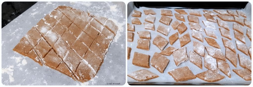 Snijd het deeg in verticale stroken van ongeveer 2 vingerbreedtes, om vervolgens schuine sneden te maken voor de klassieke snede van de mostacciolo.