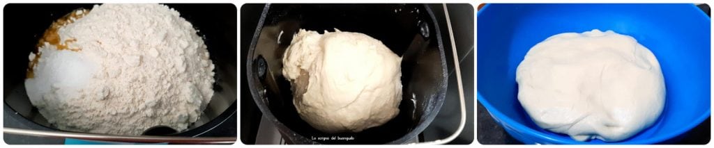 Wanneer het kneden klaar is, breng het deeg over in een grote ingevette kom, vorm het tot een bal en laat het ongeveer 2 uur rijzen.