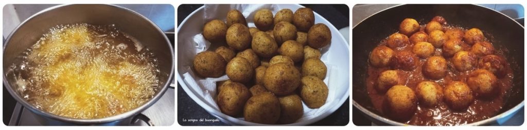 Voeg de pallotte toe aan de verkregen saus en kook, al roerend, gedurende een paar minuten.