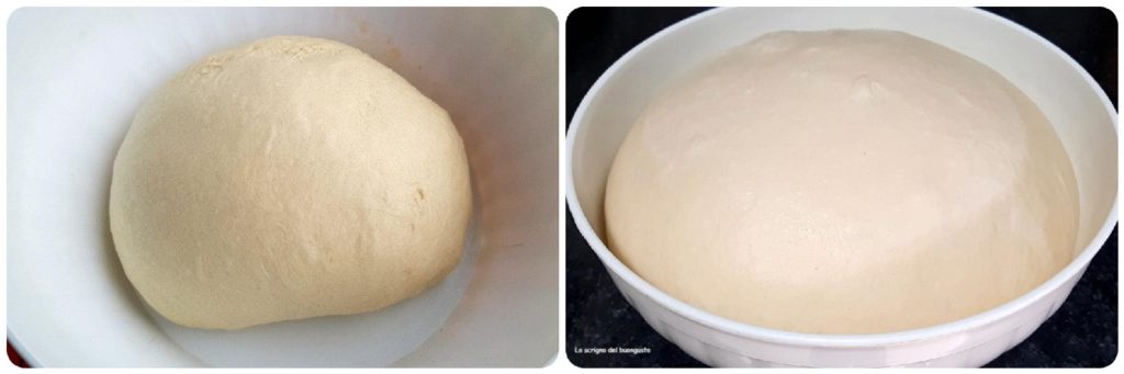 Doe het warme water en de gist in de keukenmachine en laat het oplossen, voeg dan de zachte boter, suiker, extra vergine olijfolie en 300 gram meel toe, meng goed gedurende een minuut, voeg dan het zout toe en voltooi het deeg met de resterende bloem.