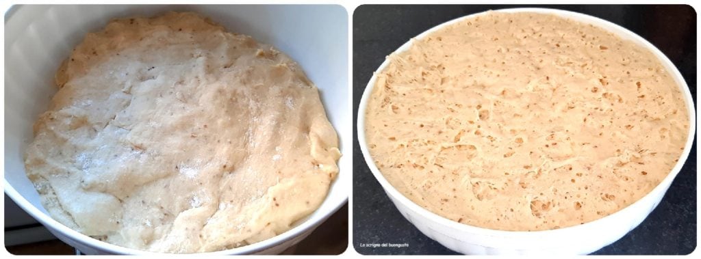 Leg het in een kom, dek af met huishoudfolie en laat rijzen op een warme plaats gedurende ongeveer 3 uur of tot het verdubbeld is.