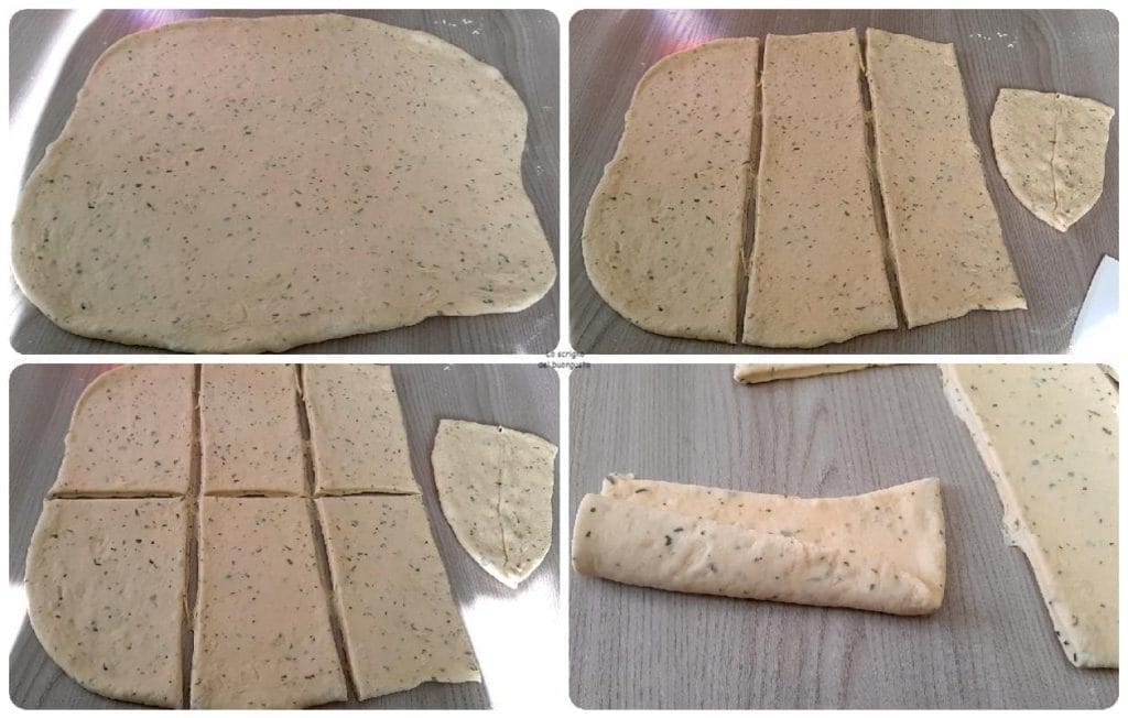 Mijn laatste strook had niet de juiste breedte, dus ik sneed het doormidden en legde het naast elkaar en vormde het broodje.