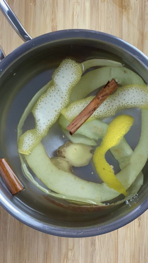 Dit recept is eenvoudig te maken en gebruikt natuurlijke en aromatische ingrediënten zoals appel schil, citroenschil, verse gember en kaneelstokken, die samen een omhullende mix vormen die je verwarmt tijdens de koudere dagen.