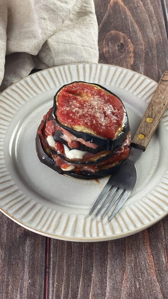 De aubergines worden in plakjes gesneden en in de oven gebakken, waardoor ze licht maar smaakvol zijn. De lagen worden afgewisseld met rauwe ham, plakjes smeltkaas die perfect smelten en een eenvoudige maar smakelijke tomatensaus. Het geheel wordt afgemaakt met een snufje Parmigiano Reggiano DOP.