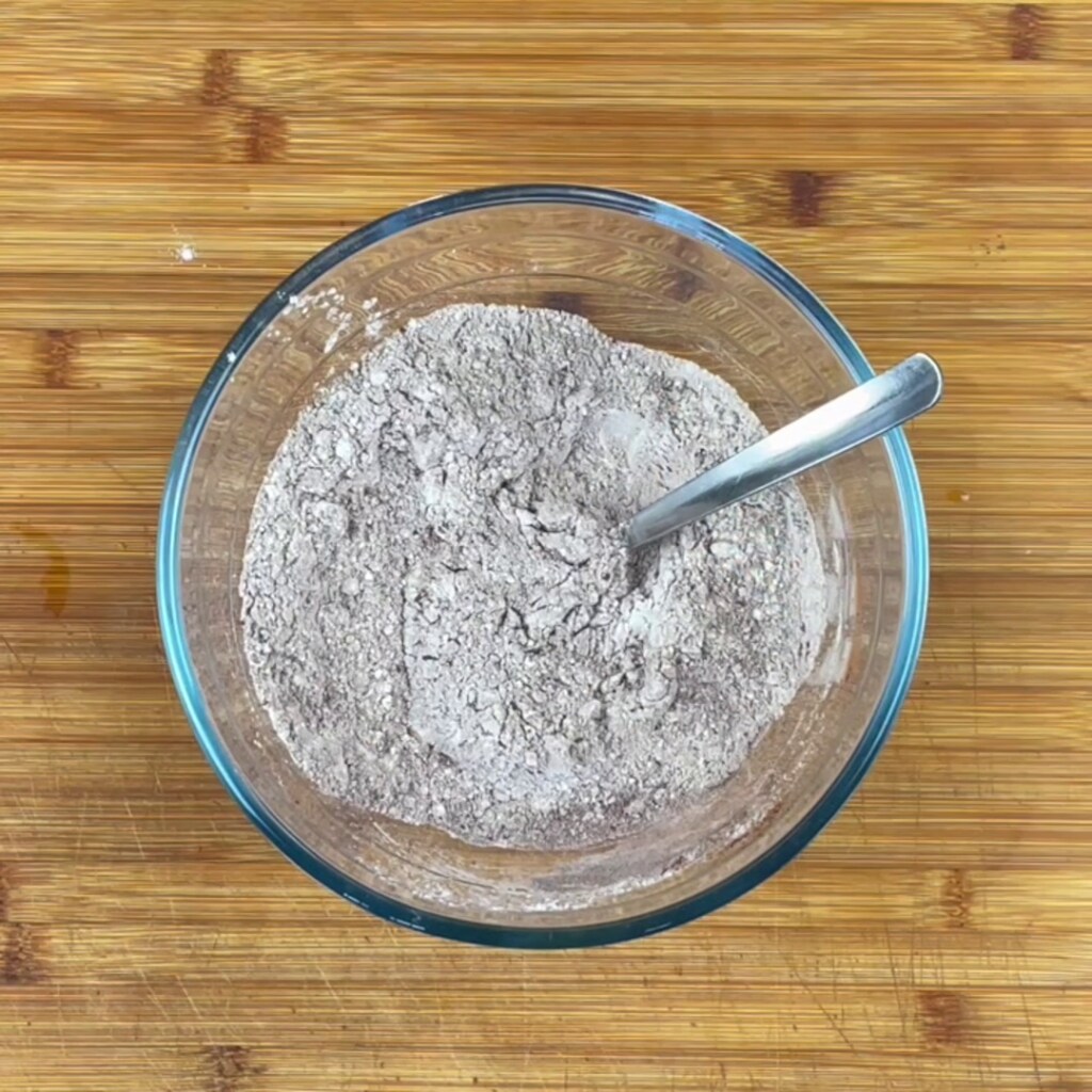 Roer met een lepel en probeer tegelijkertijd eventuele klontjes bloem en/of cacao te breken.Ga verder met de bereiding door sinaasappellikeur, zonnebloemolie en het licht met een vork geklopte ei en dooier aan de droge ingrediënten toe te voegen.