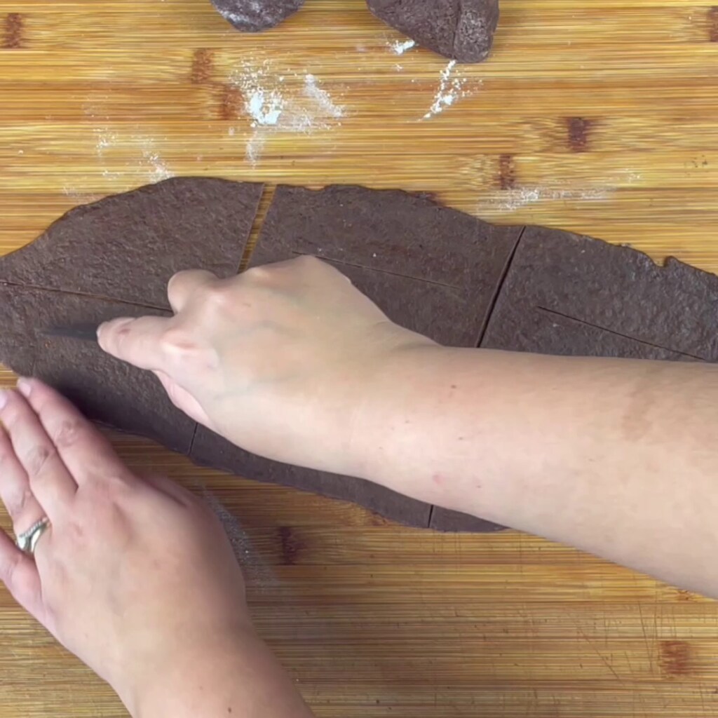 Rol elk deel uit met de deegroller of een pastamachine tot een dikte van ongeveer 1 mm, of zelfs dunner als je kunt.Verdeel het uitgerolde deeg in rechthoeken van 10-15 cm en snijd elke rechthoek in het midden in.