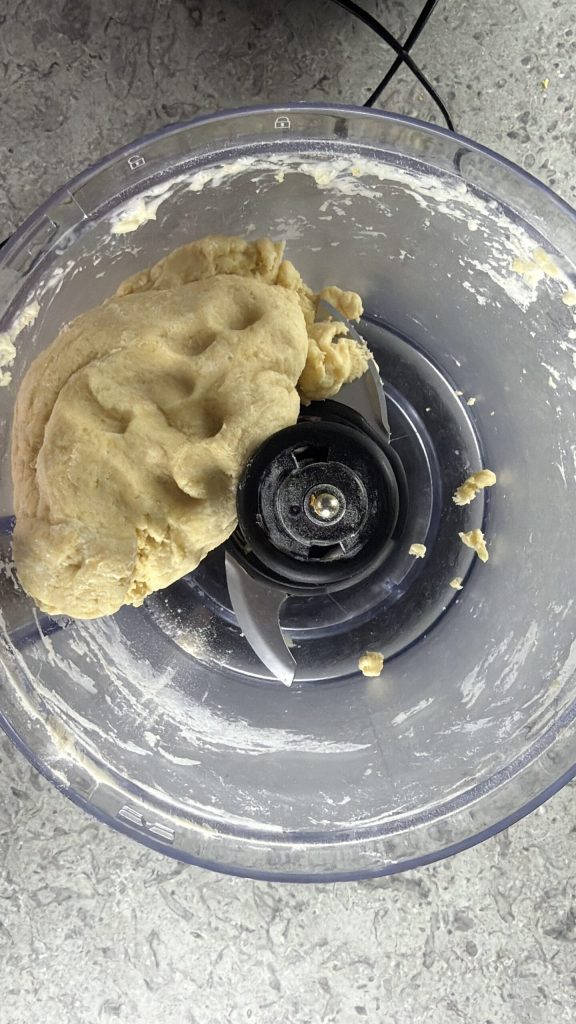 Mix alles gedurende ongeveer een minuut of totdat het deeg samenkomt.