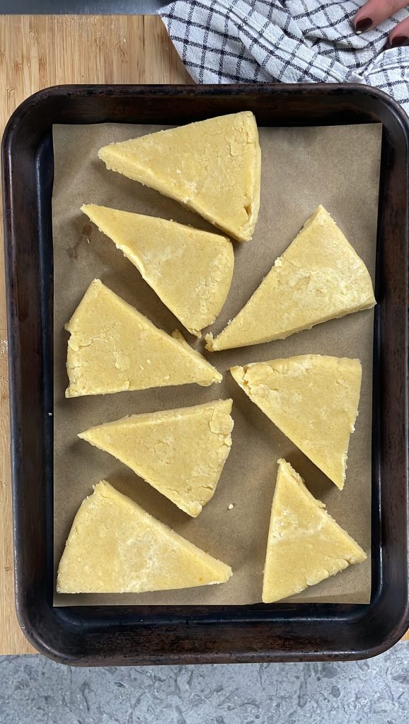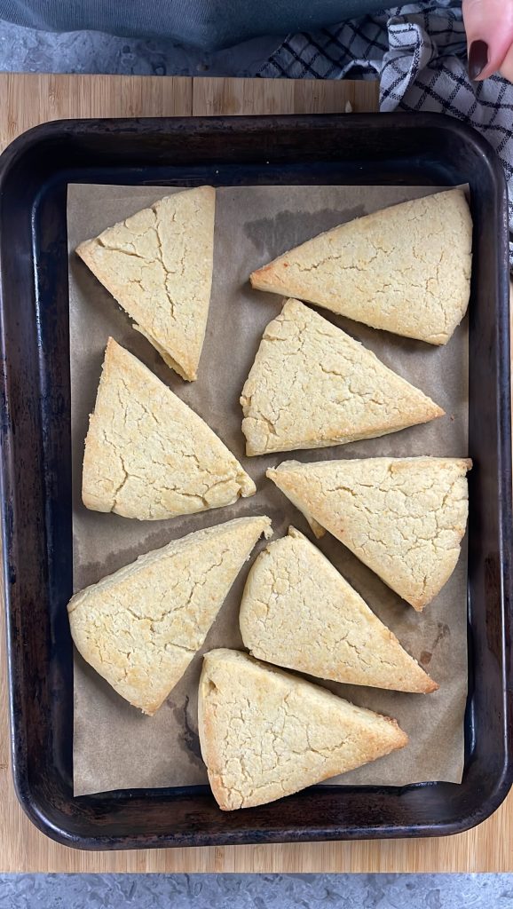 Bak de scones in een voorverwarmde statische oven op 190°C gedurende 20-25 minuten, ze moeten licht goudbruin worden aan de bovenkant.
