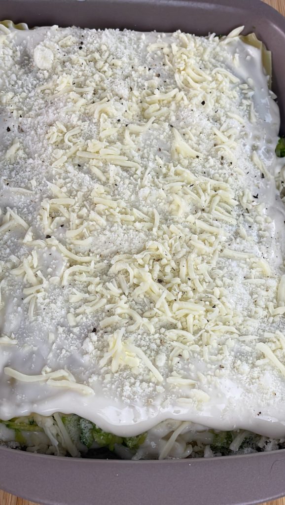 Witte lasagne met courgette, bechamelsaus, mozzarella en pecorino, een romig en smakelijk vegetarisch hoofdgerecht, perfect voor familiediners, maar ook voor een etentje met vrienden of een zondag zonder veel zin in vlees.