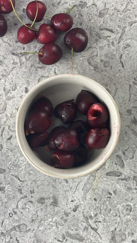 Voeg ook de ontpitte kersen toe en laat het deeg nog een uur rijzen.
