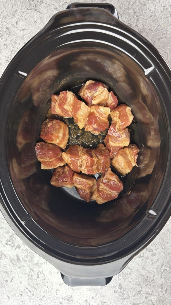 Geglazuurde varkensbuik in slowcooker, een eenvoudig en smaakvol recept, perfect als je op zoek bent naar een mals, sappig vleesgerecht met gegarandeerd resultaat.