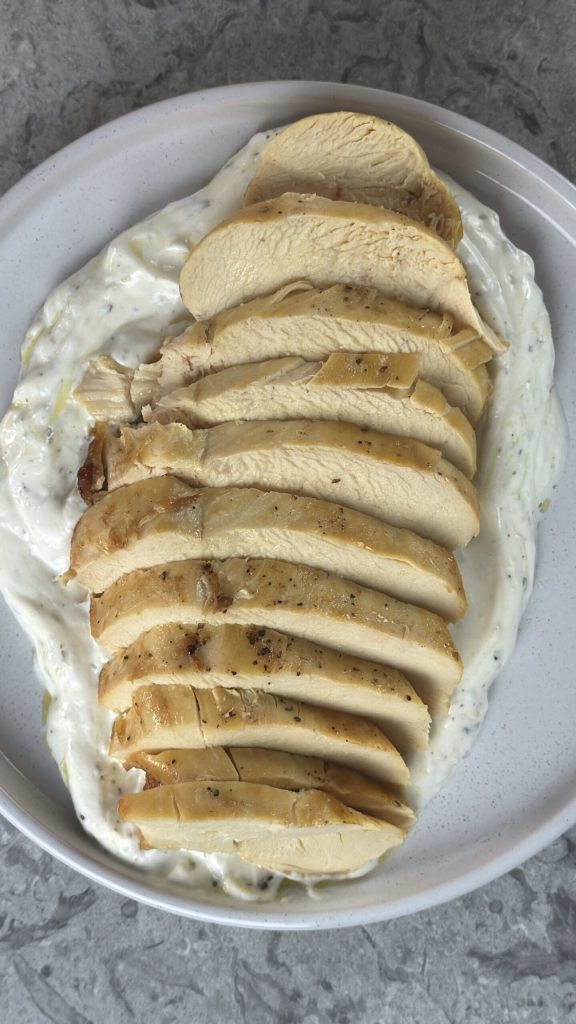 Gesneden kip met yoghurtsaus