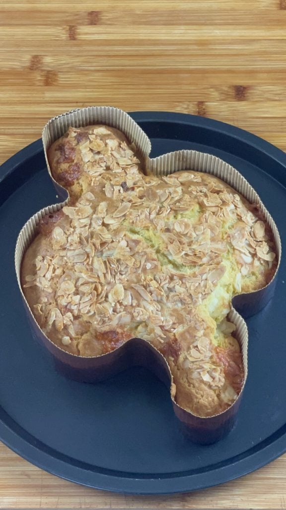 Als de bovenkant te donker wordt, bedek het dan met aluminiumfolie.Laat de colomba afkoelen en serveer het met je favoriete vleeswaren en kazen.