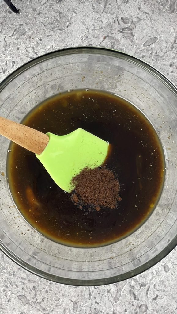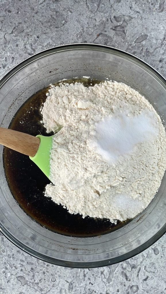 Laat het iets afkoelen en voeg de donkere rietsuiker toe. Ik heb de integrale gebruikt.