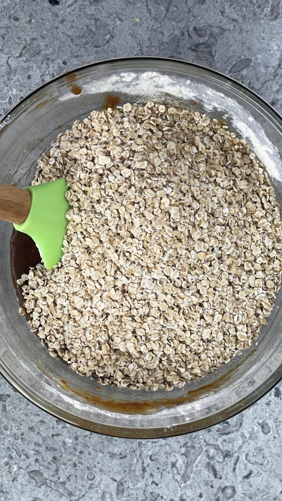 Na goed mengen, voeg ook de havervlokken toe aan de kom. Ik heb de kleine gebruikt.