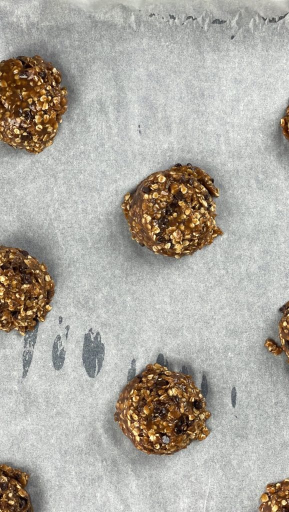 Vorm de koekjes direct op de met bakpapier beklede bakplaat met een ijsschep of een lepel.