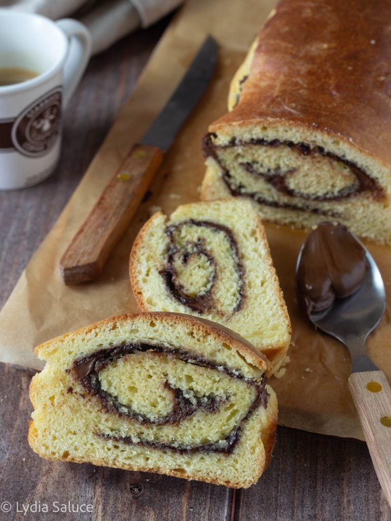 Hazelnoot en chocolade rol, een zachte brioche gevuld met hazelnoot en chocolade smeerpasta. Een geschikt recept voor het hele gezin, perfect voor zowel ontbijt als tussendoortje.