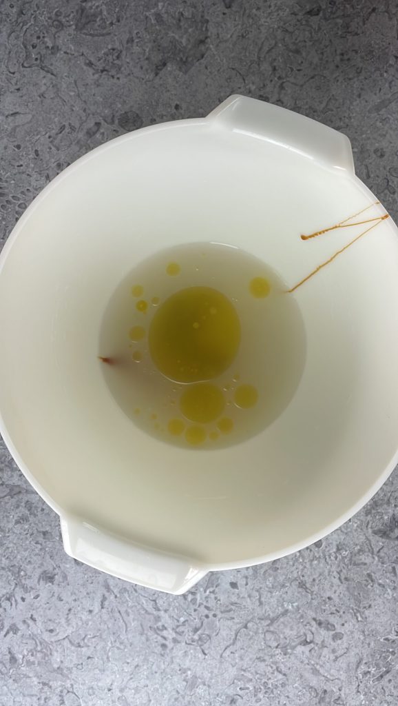 Nadat het is opgelost, voeg je de gerstemout en de extra vergine olijfolie toe.