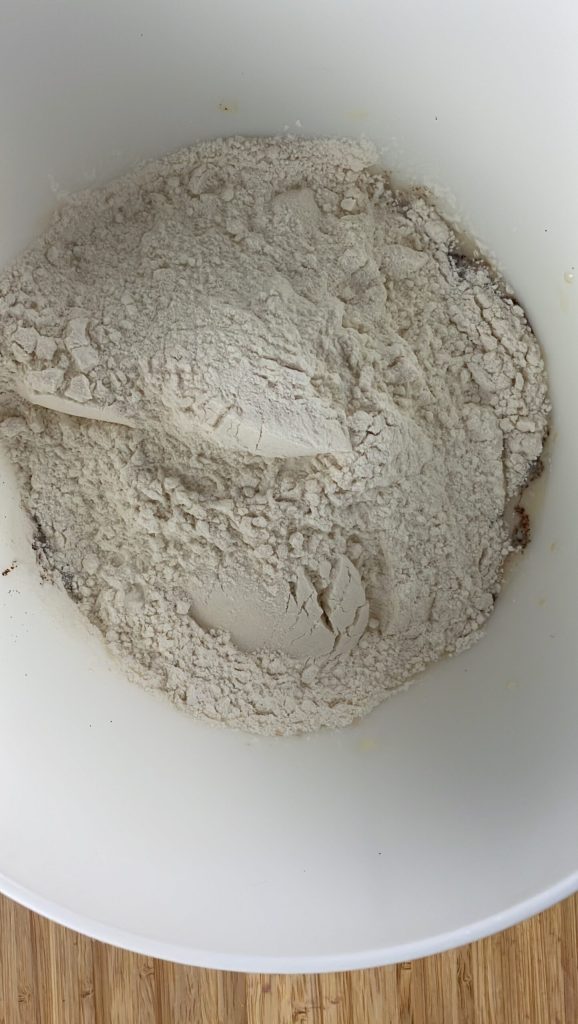 Weeg vervolgens de Manitoba-meel en het zout af in de kom van de planeetmenger.