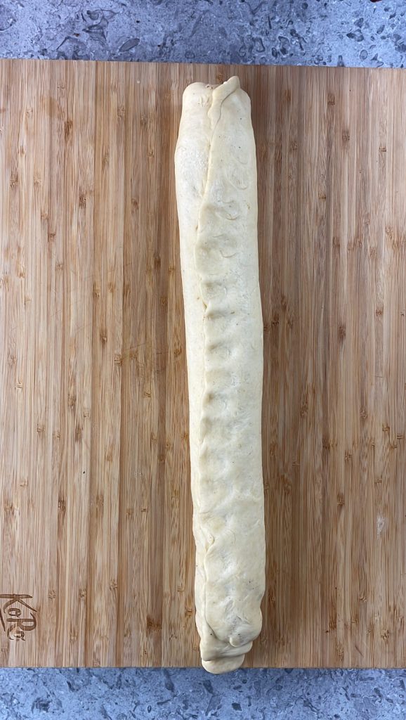 Snijd het deeg over de lange zijde doormidden en vlecht het.