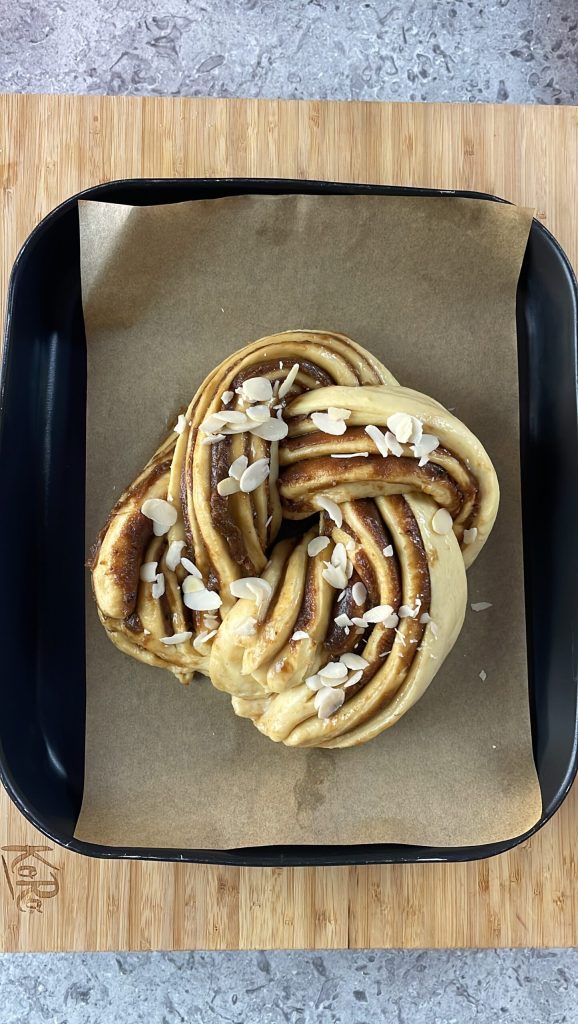 De Kringel heeft noordelijke wortels en wordt traditioneel bereid tijdens de feestdagen in Estland en de Baltische Staten. Het bijzondere ligt in de bereiding van het deeg: na het uitrollen en vullen, wordt het opgerold, gesneden en gevlochten, wat een unieke en spectaculaire vorm creëert. Mijn kaneelbrood volgt dezelfde procedure, met een zacht deeg gemaakt van Manitoba-meel, melk, boter en een vleugje vanille, terwijl de vulling rijk is aan boter en kaneel, voor een intense en omhullende smaak.