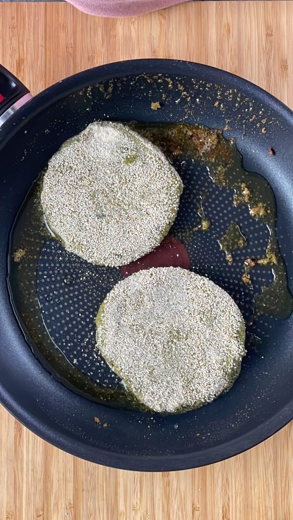 Haal vervolgens iedere burger door het paneermeel en zorg dat het goed blijft plakken.