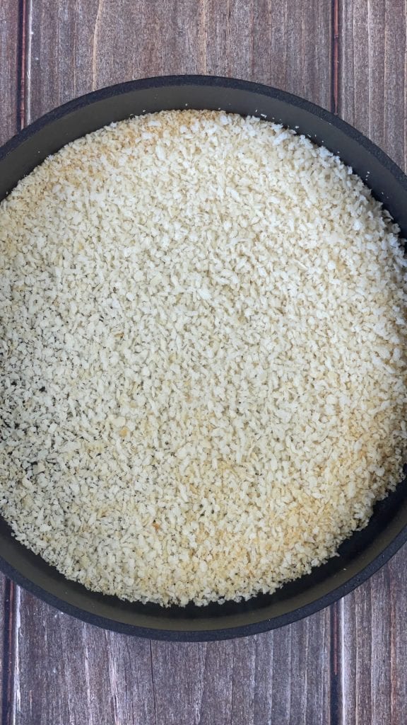 Het moet licht goudbruin worden.Doe de panko in een kom.