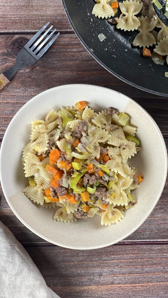 • Pasta met witte ragù en prei
