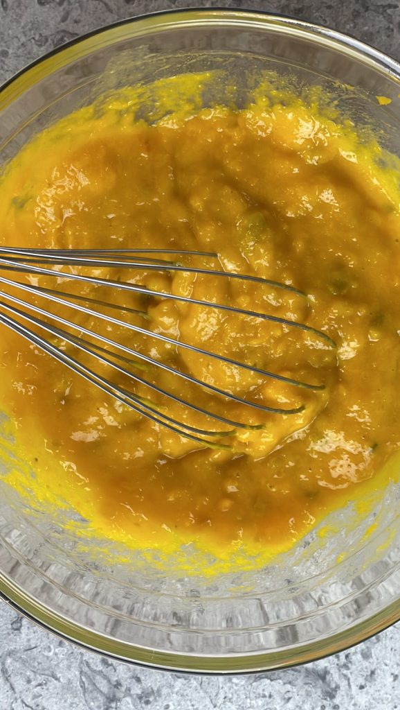 Meng alle ingrediënten goed door elkaar totdat ze goed gemengd zijn.