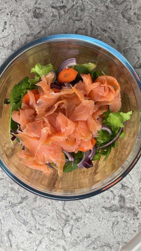 Deze salade met gerookte zalm is een uitstekende oplossing wanneer je weinig tijd hebt maar toch een gezonde en smakelijke maaltijd wilt.