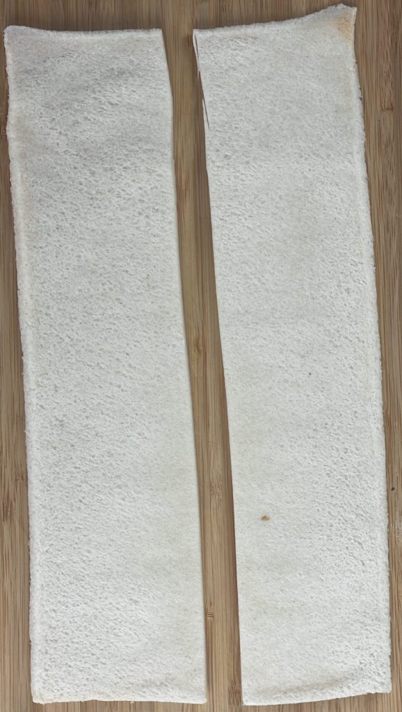 Verdeel elk stuk in de lengte doormidden met behulp van een mes of een pizzasnijder.
